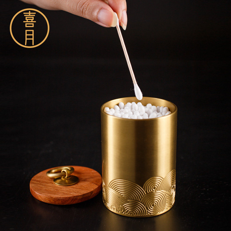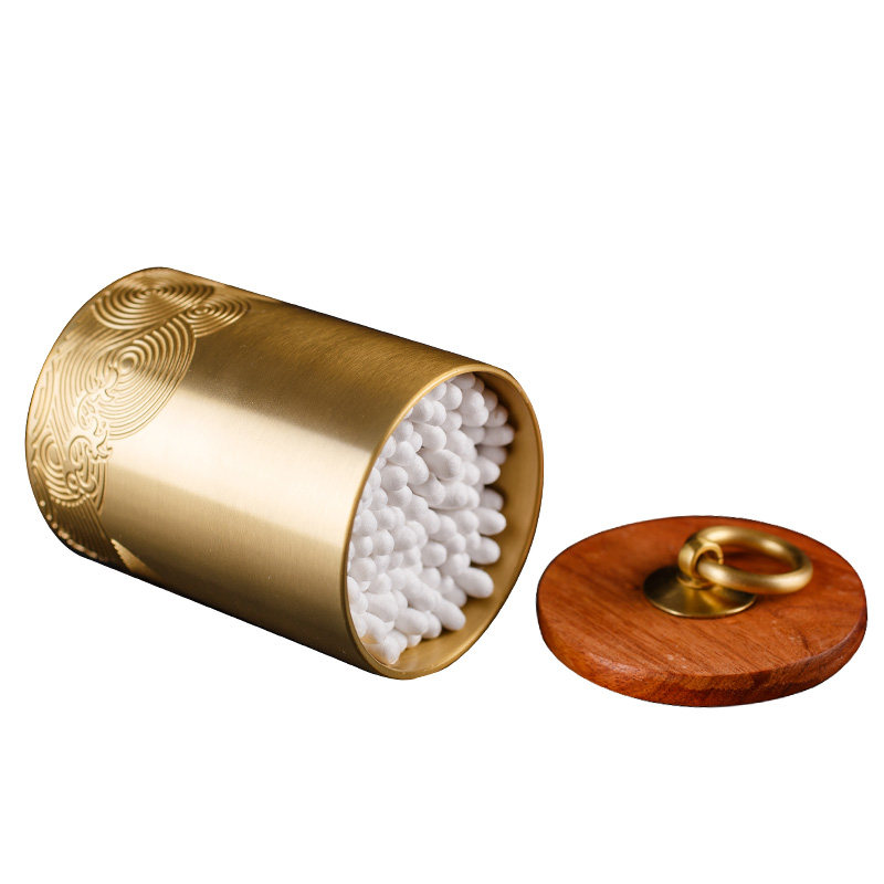 Xiyue new Chinese style brass cotton swab box personalized creative cotton swab tube home living room cotton swab storage box with cover portable