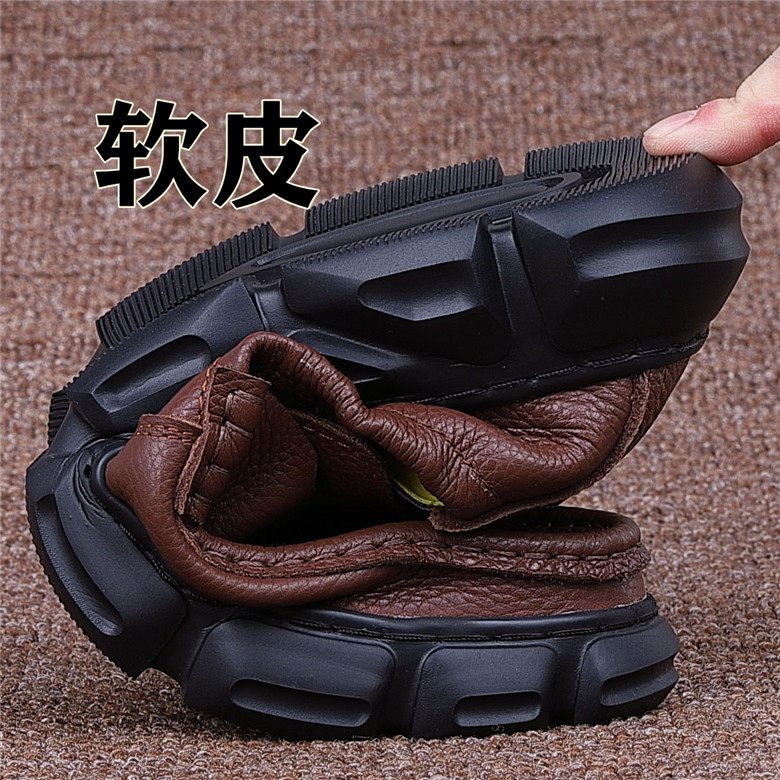 Foreign trade casual leather shoes men's thick-soled men's toe layer leather shoes men's slip-on shoes non-slip soft-soled dad leather shoes