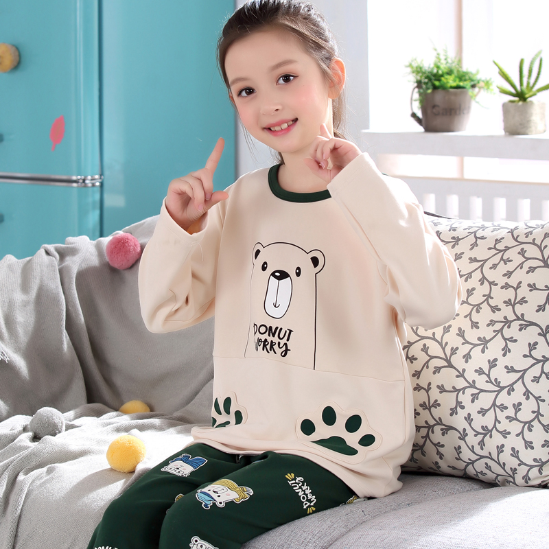 Children's pyjamas girls spring and autumn pure cotton long sleeves princess summer baby girl's home in thin style The girl's family is serving a small new