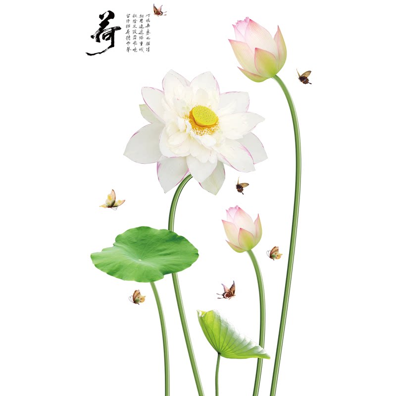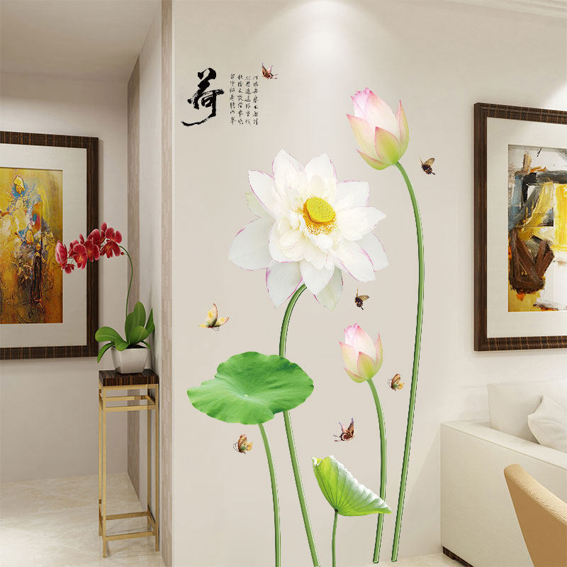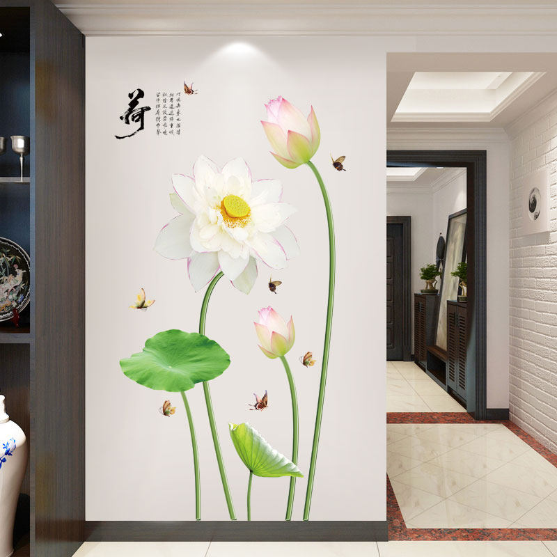China Wind Lotus Living Room Bedroom Room Cozy Wall Sticker Dining Hall Xuanguan Wall Decorative Wall paper Self-adhesive painting
