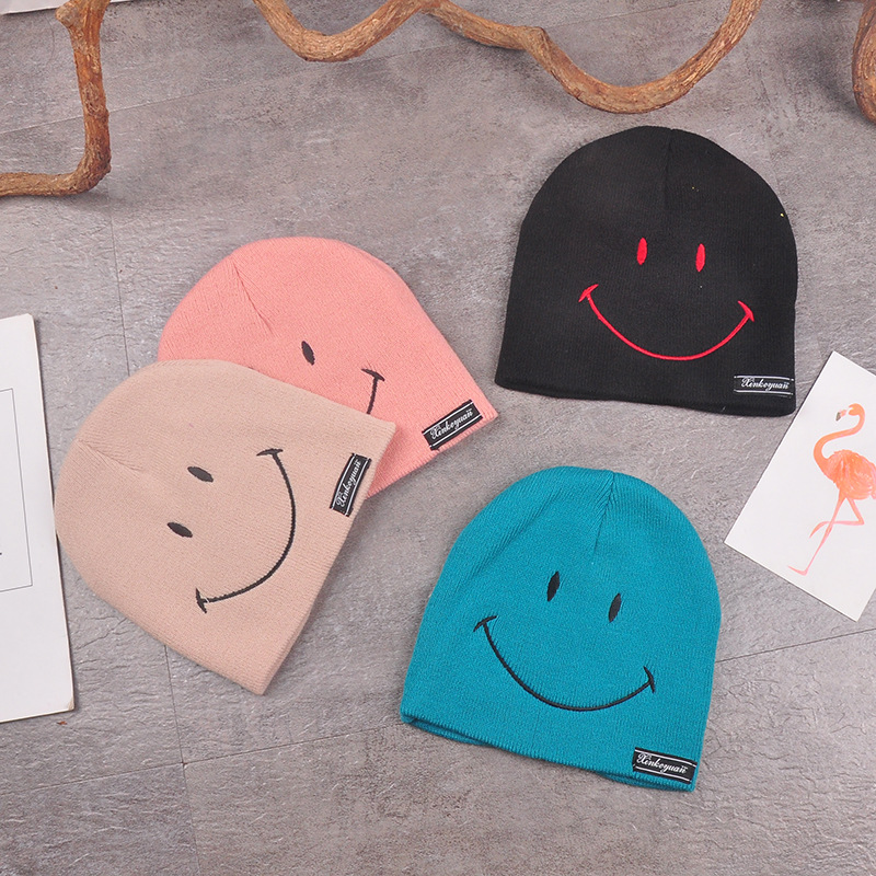 Children's front and rear expressions autumn and winter new style embroidery smiley children's knitted hat Korean version of baby pullover wool