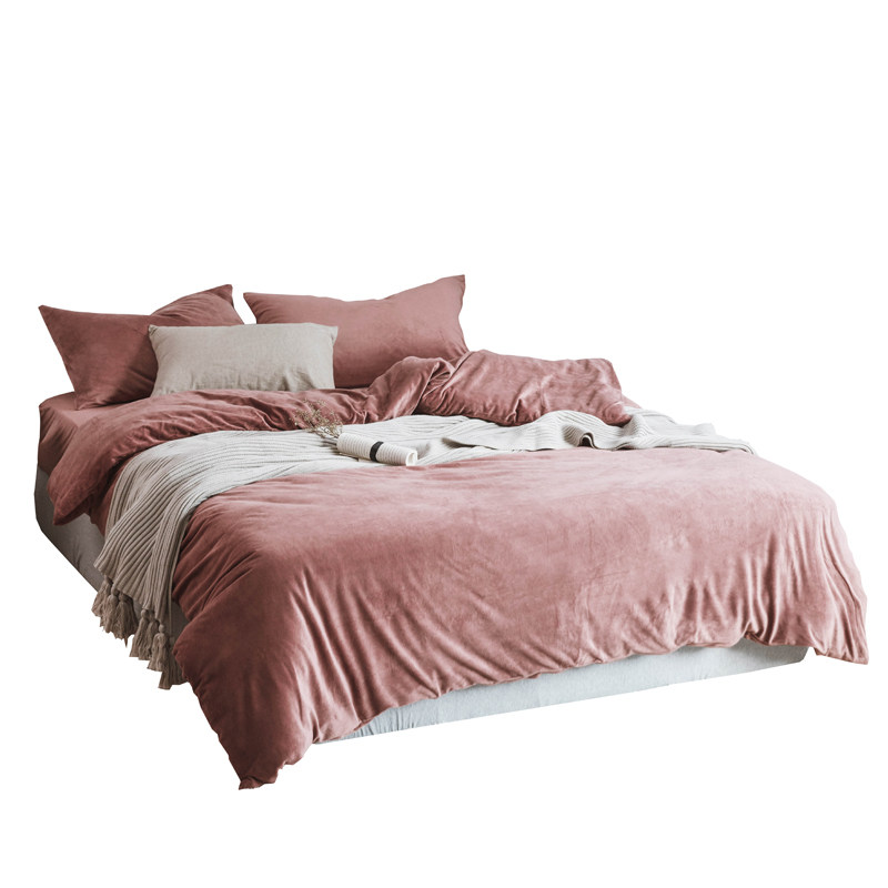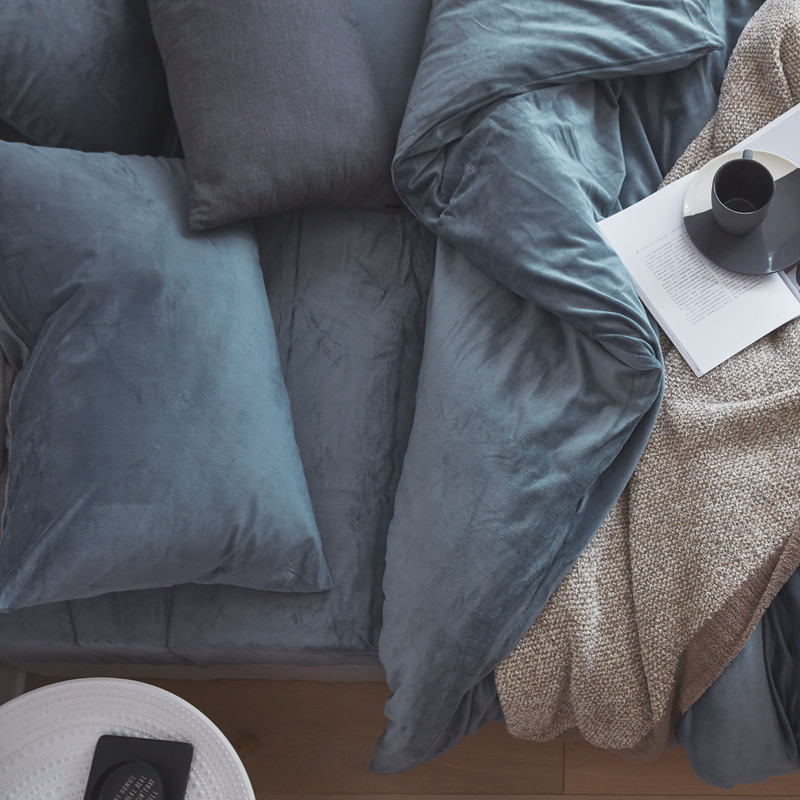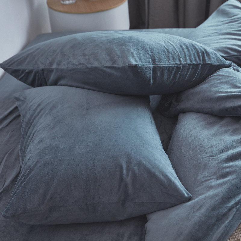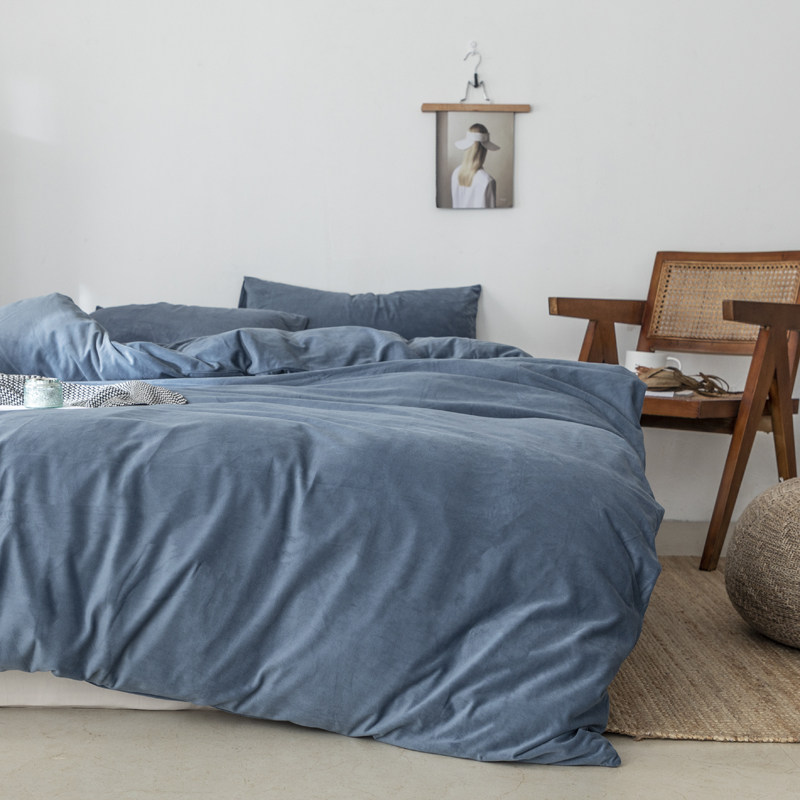 Standing Winter MONOCHROCHROM Foggy Blue Soft Glutinous Velvet Velvet Four Sets Warm Double Quilt Cover Autumn Winter