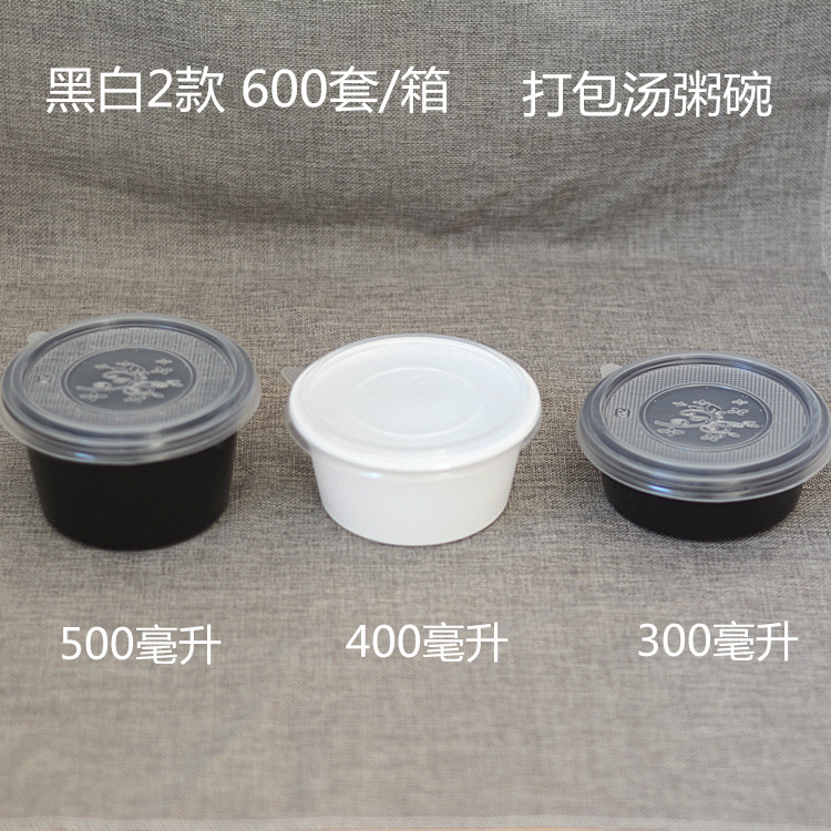 Disposable plastic bowl soup bowl porridge bowl delivery packaged soup porridge small bowl thickened black and white 600 sets box