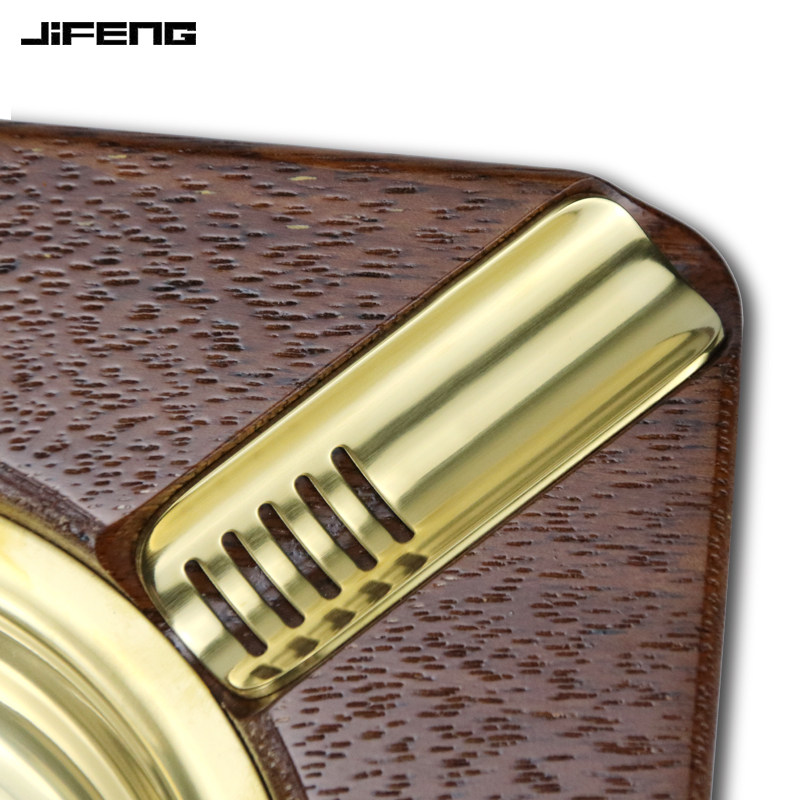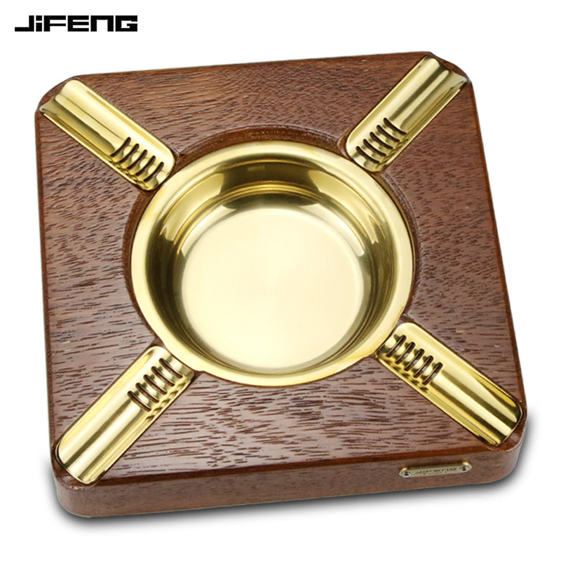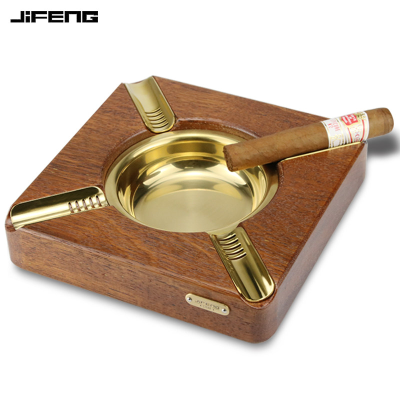 JIFENG Monsoon Cigar Ashtray Printed Eggwood Finely Carved Fine Aluminum Alloy Four Trough Living Room European and American Smoke Cylinders Big-Taobao