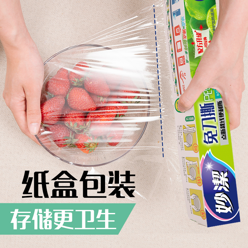 Miaojie knife-free tear PE plastic wrap 60 meters large bowl box plus 30 meters middle bowl box