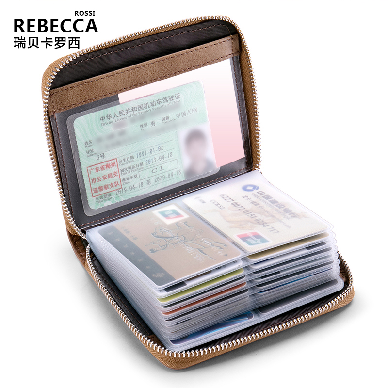 Real leather Large capacity burglar-proof swipe bag for men Multi-position anti-magnetic anti-magnetic small card bag ultra-thin financial card sleeve woman