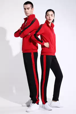 Men's and women's two-piece sportswear suit spring and autumn large size couple cardigan stand-up collar casual thick cotton suit sportswear