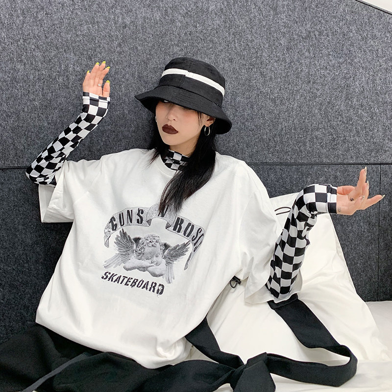 How to foam spring suit women 2022 new half height collar Long sleeves T-shirt shorts short sleeves T tide cards Two sets