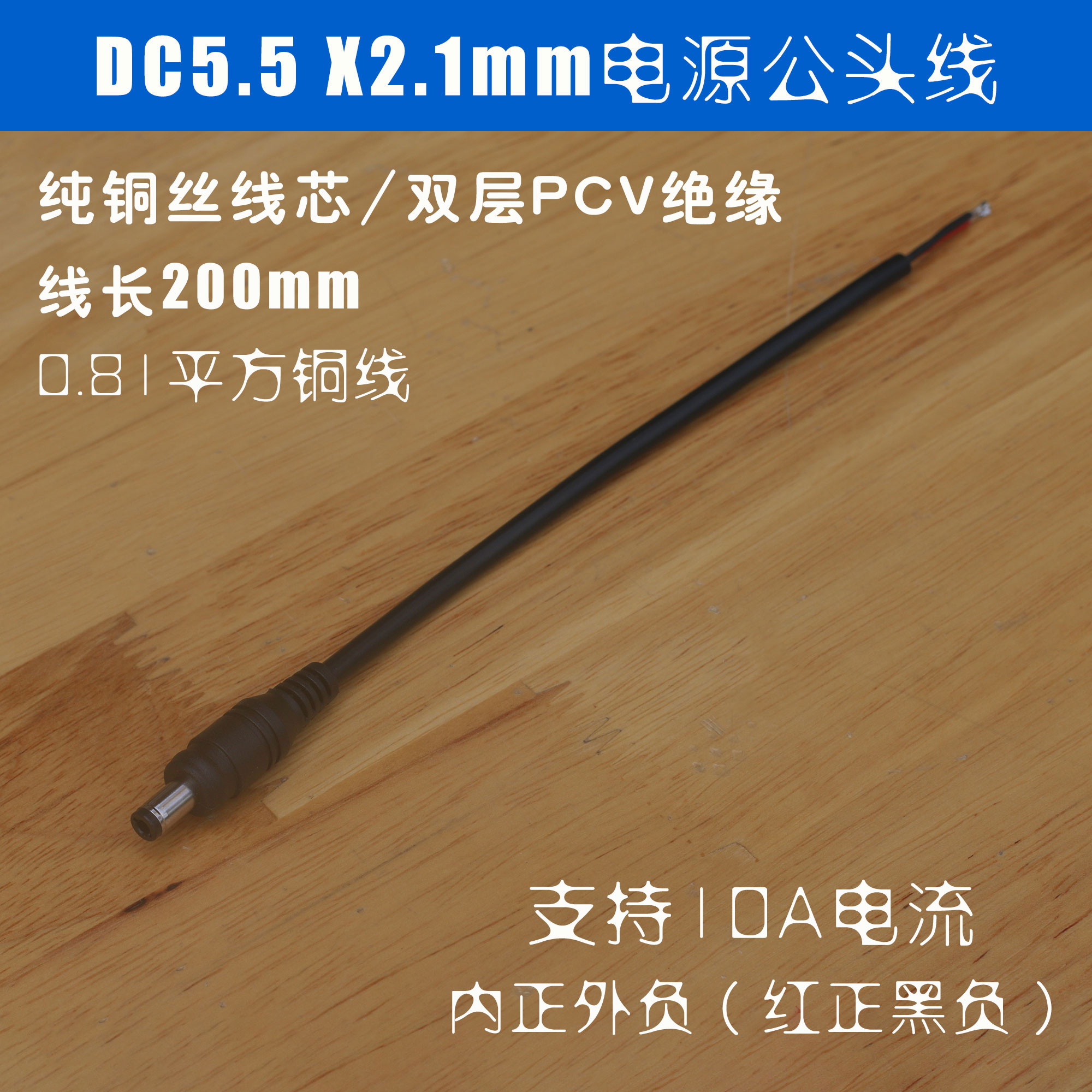 0 81 squared pure copper plus coarse dc55 21 power cord 12VDC male joint 5 5 2 1MM male head line
