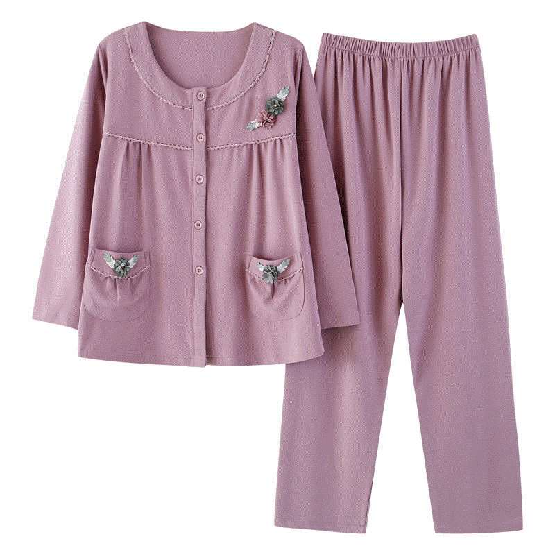 Middle-aged women spring and Autumn pajamas Cotton long-sleeved suit cotton collarless middle-aged mother plus size cardigan home