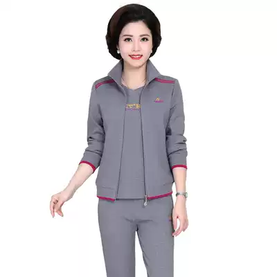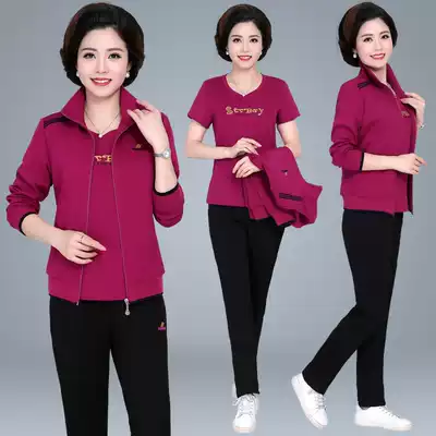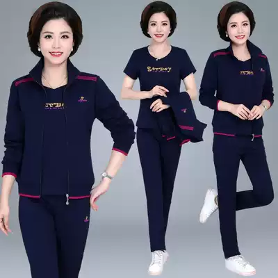 2021 Spring and Autumn new middle-aged and elderly sports suit women cotton long sleeve large size casual wear three-piece mother