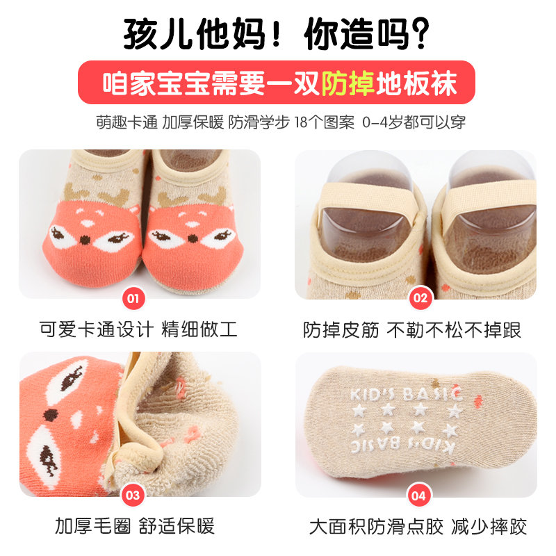 Baby socks anti-slip spring and autumn thickening baby and girls to learn socks in early school to prevent thin children's flooring socks