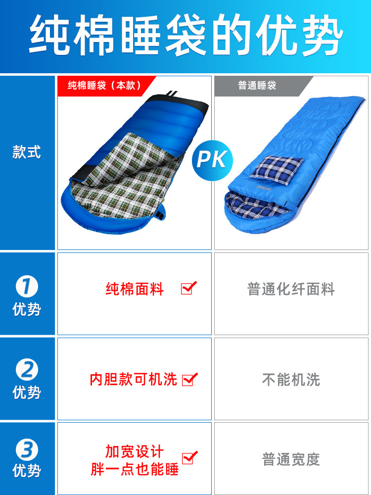 1 5KG pure cotton sleeping bag 1 5KG pure cotton sleeping bag detachable liner 1 8KG pure cotton sleeping bag