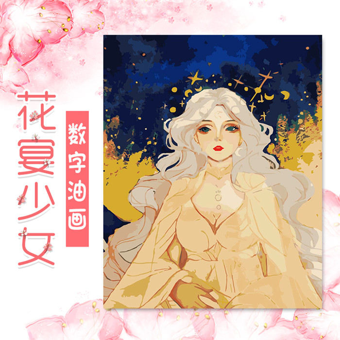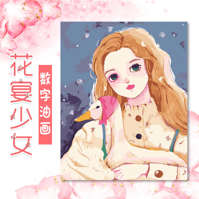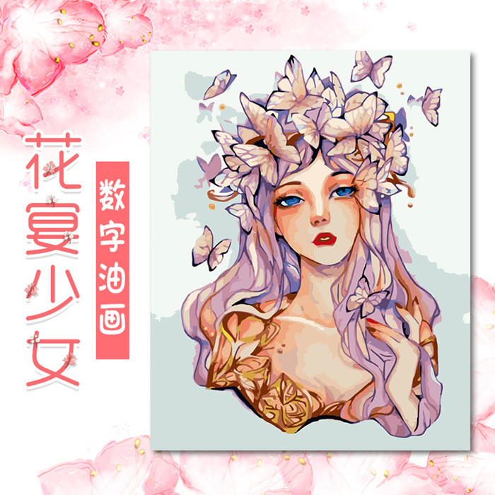 Diy collar digital oil painting figure coloring painting adult hand painting living room bedroom decoration painting Girl