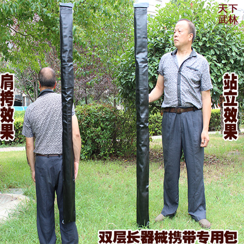 Wushu stick martial arts sword bag long instrument bag full leather super long waterproof bag bag stick bag double carry special bag