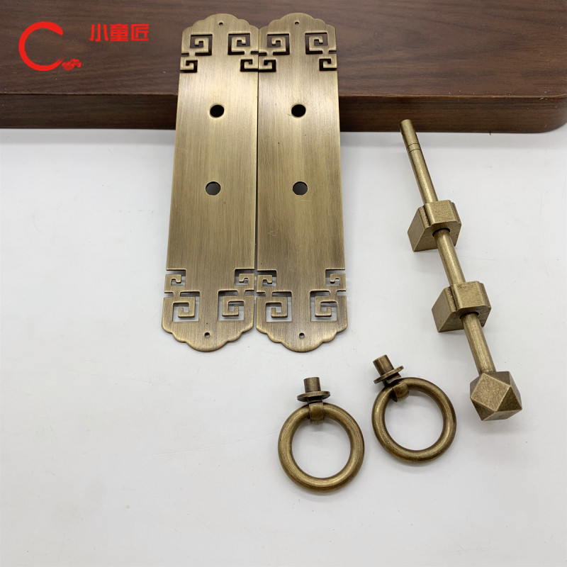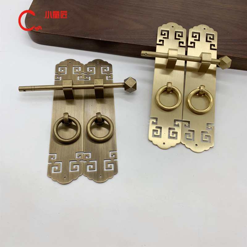 New Chinese antique pure copper wardrobe cabinet door handle double switch overall cabinet copper handle Chinese classical furniture shoe cabinet handle