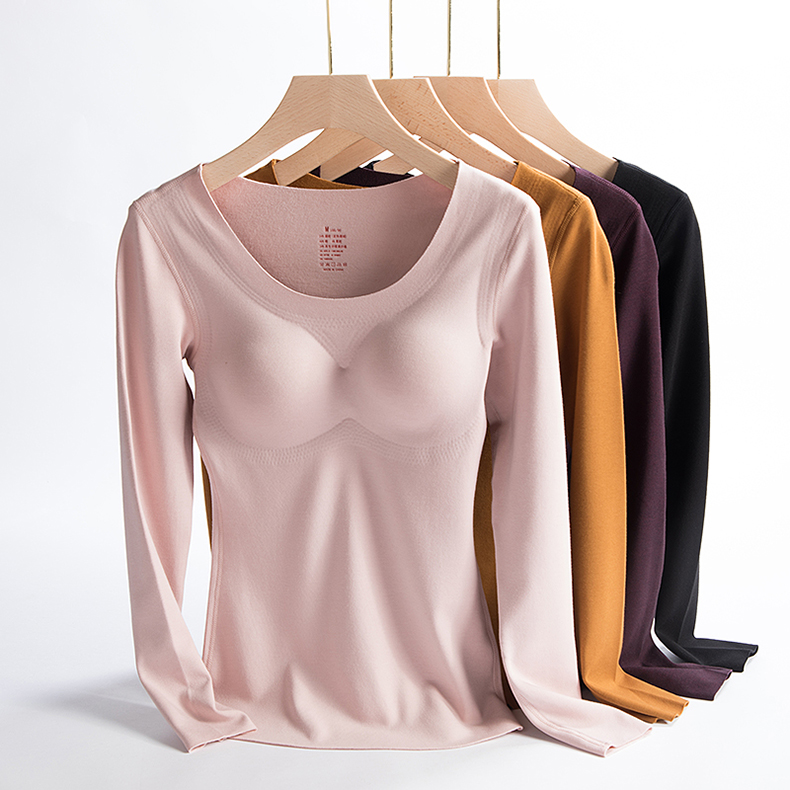Duvet Fever-free lady Fever Coat Single single blouse with velvety thickened with chest cushion Meatshirt with undershirt autumn and winter