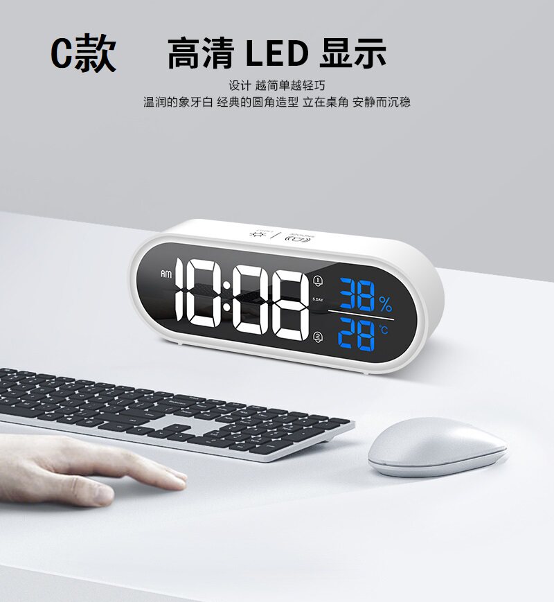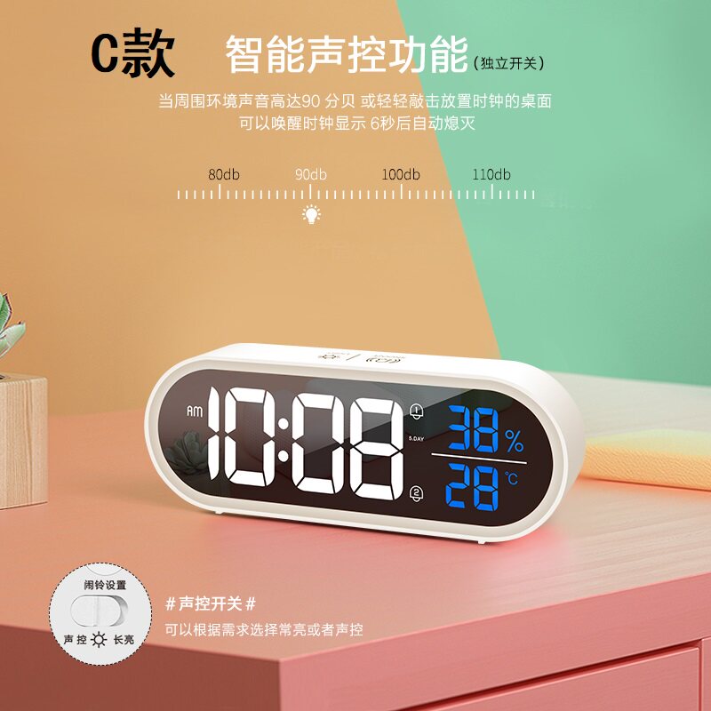 Smart electronic alarm clock for students with charging silent luminous bed clock Simple voice-activated LED mirror digital alarm