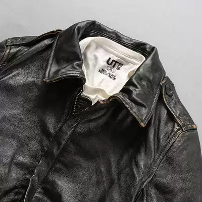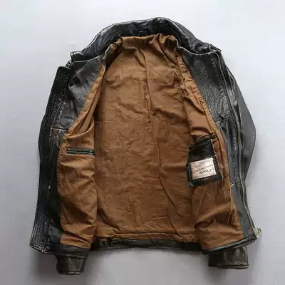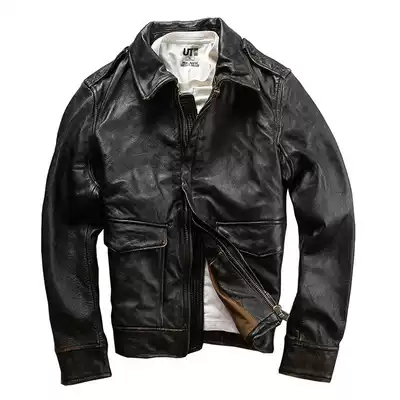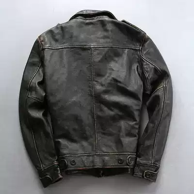 AVFLY leather flight jacket M1 leather jacket men's first layer cowhide stone mill washed old lapel leather leather jacket