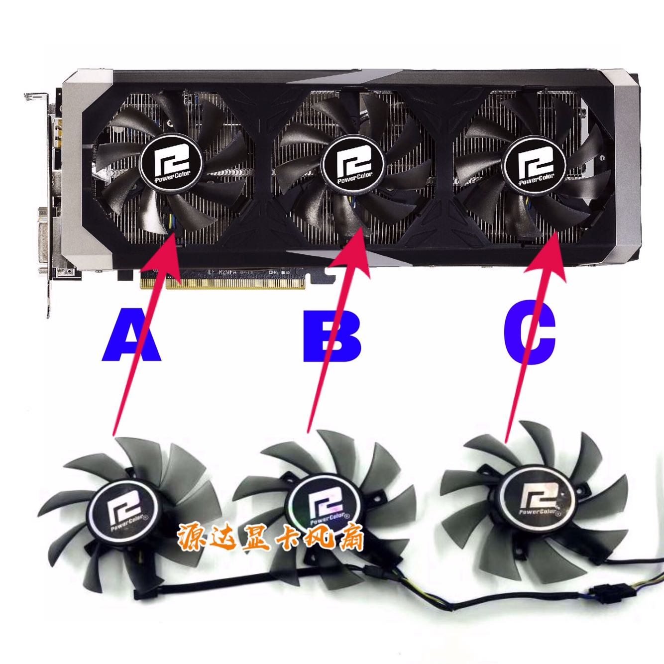 Figure C of a set of three fans A Figure B