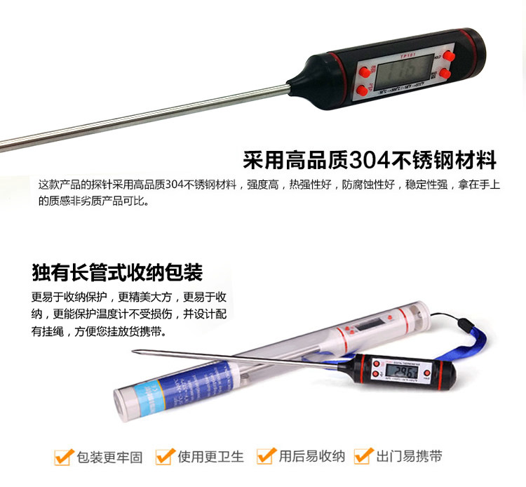 TP101 Kitchen Electronic Food Oil Thermometer Baby Bath Water Thermometer Food Milk Tea Water Temperature Meter Probe