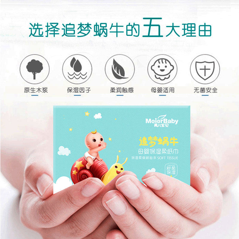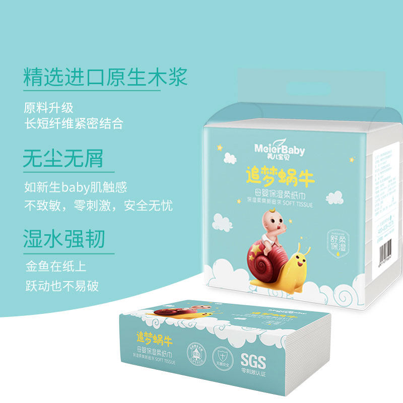 Meier baby dream chasing snail series fragrance-free comfortable baby wipe nose baby moisturizing soft paper towel