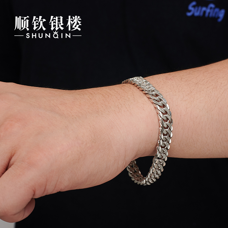 Silver bracelet for boys 925 sterling silver hip-hop trend silver jewelry for men whip necklace Korean version personality ins niche design
