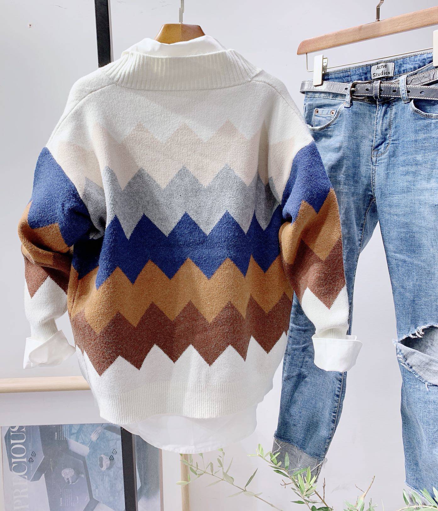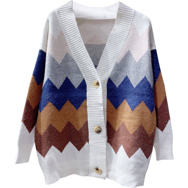 2022 Fall New Women's Dress Rhomboid Bangs LAZY SWEATER SWEATER LOOSE CARDIOVERT WOOL KNIT CARDIOVERT THICKENED JACKET