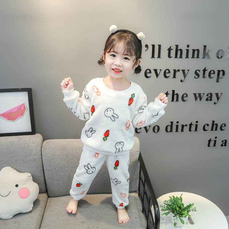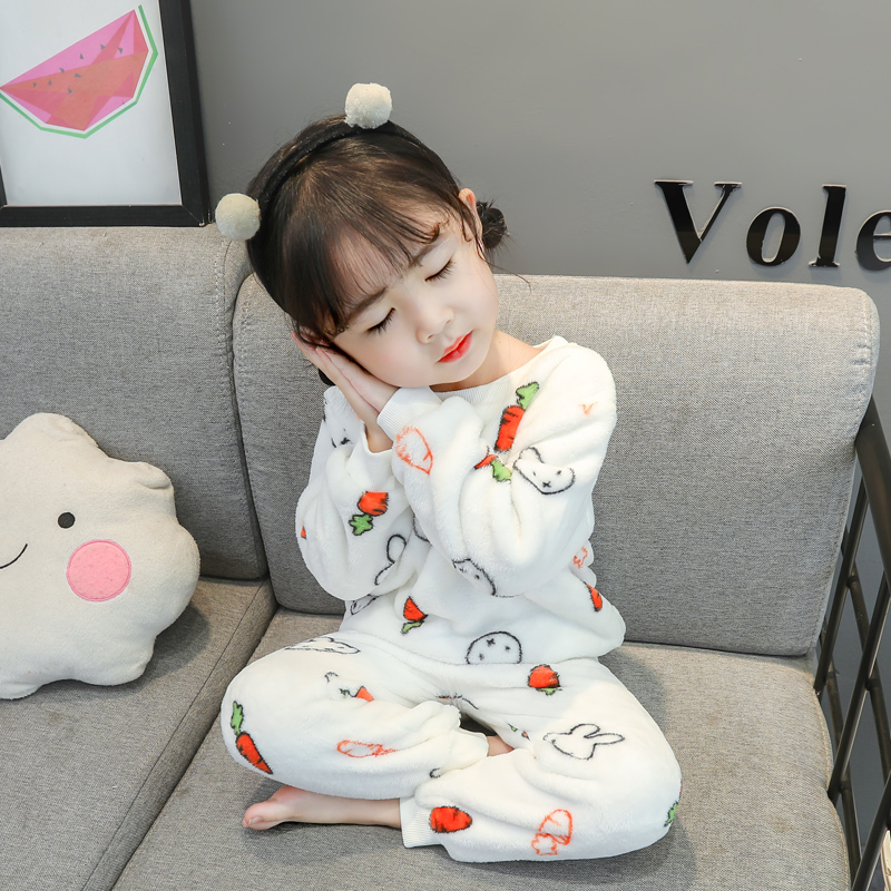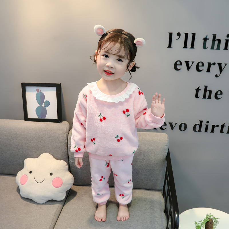 Children's Pajamas Autumn and Winter Coral Fleece Baby Flannel Girls Winter Girls Children's Warm Girls Home Clothes Set