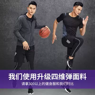 Fitness clothing men's suit four-piece running gym night running spring and autumn winter quick-drying tights
