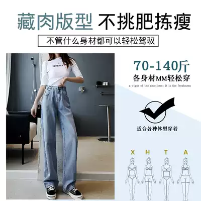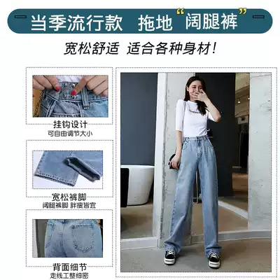Towing the floor wide-legged soft jeans women's 2021 new spring and autumn Korean version of loose high waist thin straight pants