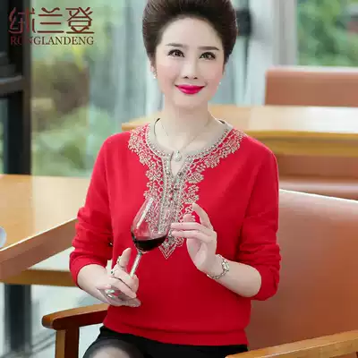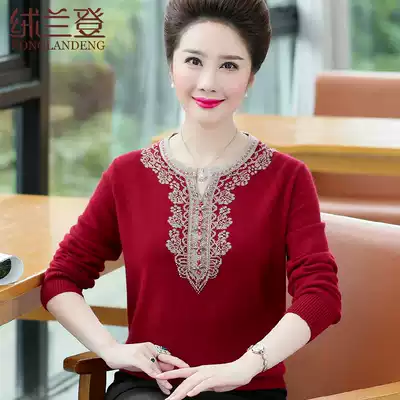 Middle-aged and elderly sweater women plus fat plus size mother clothing autumn and winter wool sweater middle-aged women knitted base shirt 50 years old