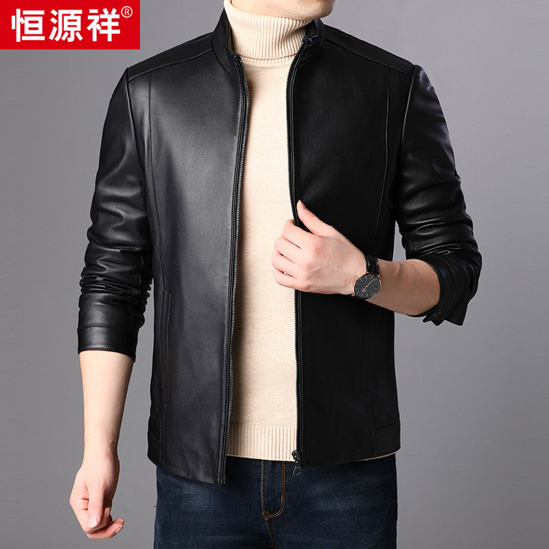 Hengyuan Xiang Leather Leather Clothing Male Style Leather Jacket Locomotive Leather Jacket Sheep Leather Collar Casual Men's Real Leather Jacket Man