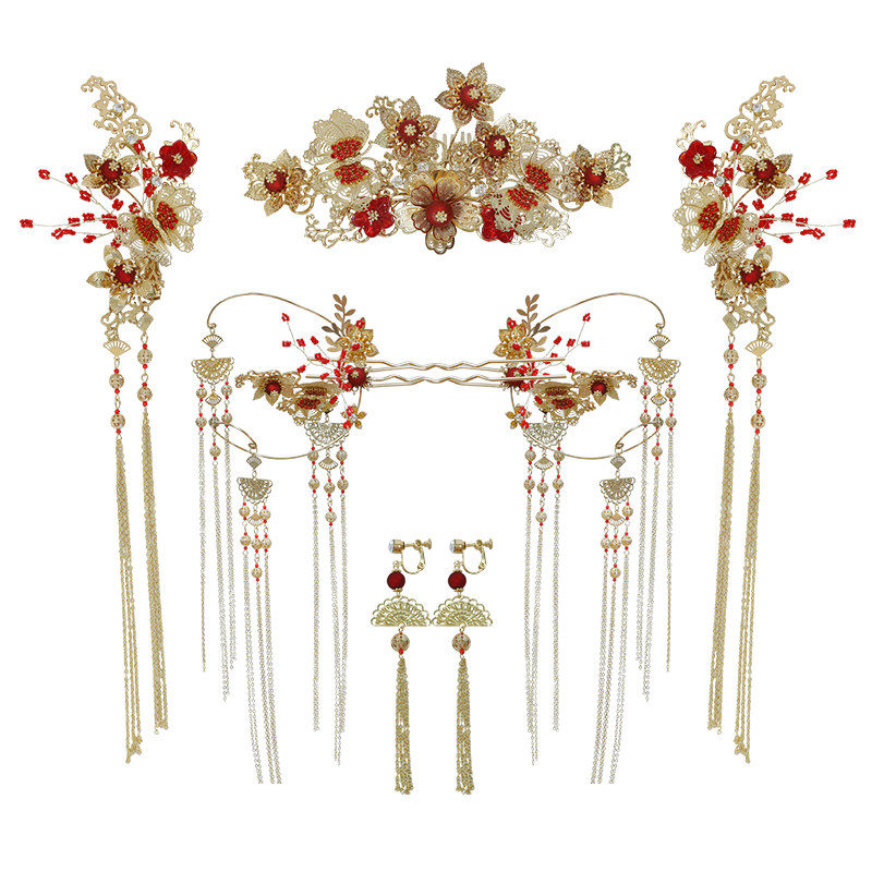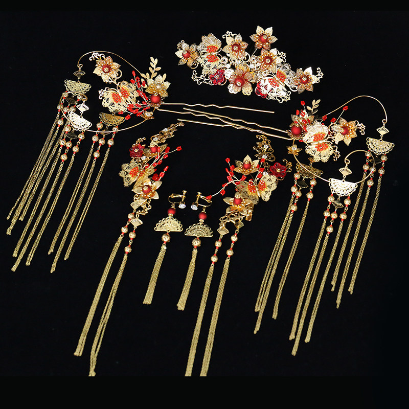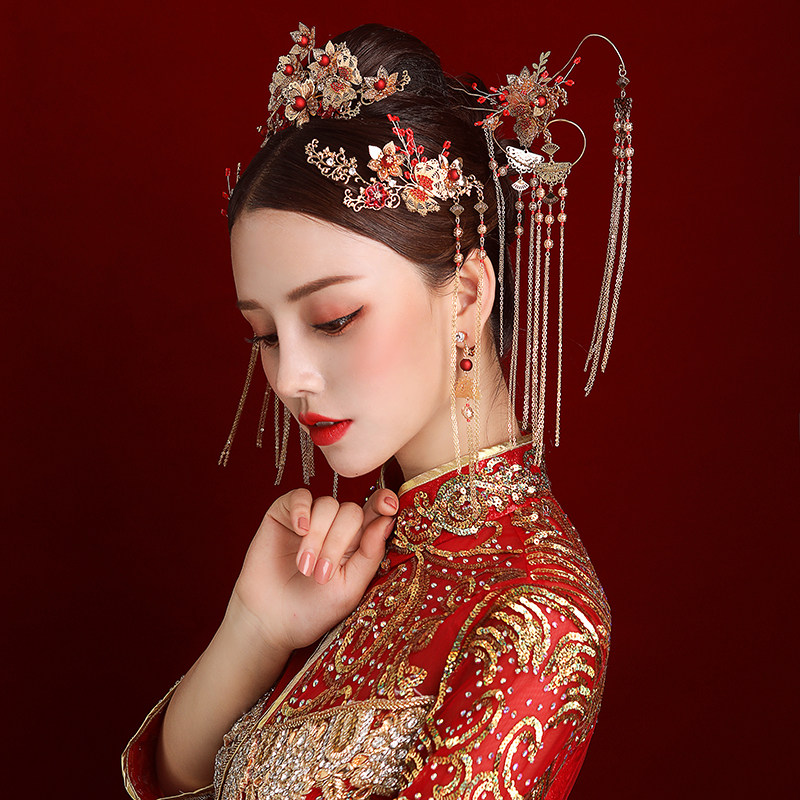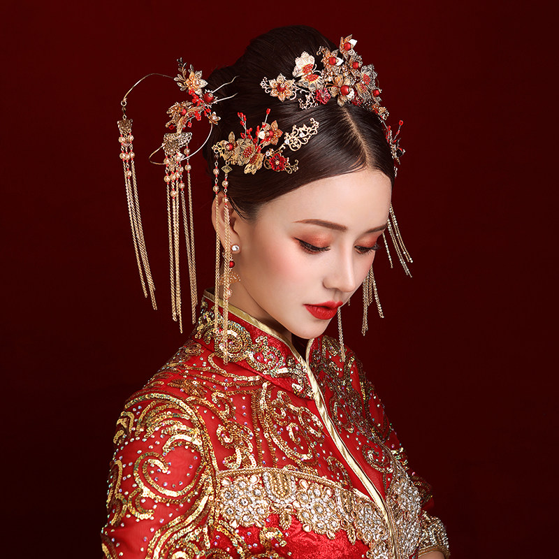 Cute Bride 2021 New Chinese Retro Wedding Golden Flowers Show and Hair Accessories of an Fengguan Xia Guan