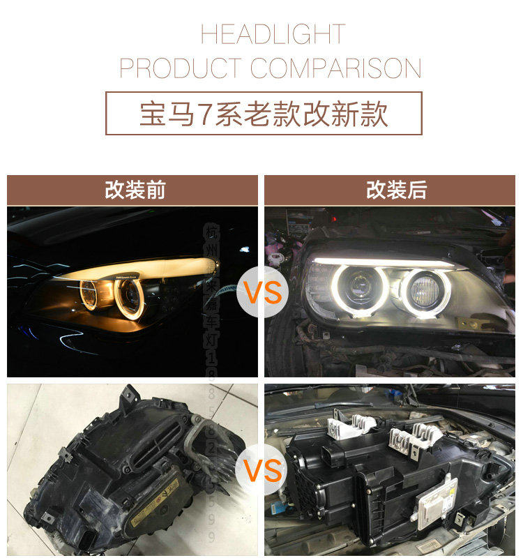 BMW7 series F02 low fit upgrade high matching living room light original clothing F02 new headlights assembly LED angel eye living room lamp