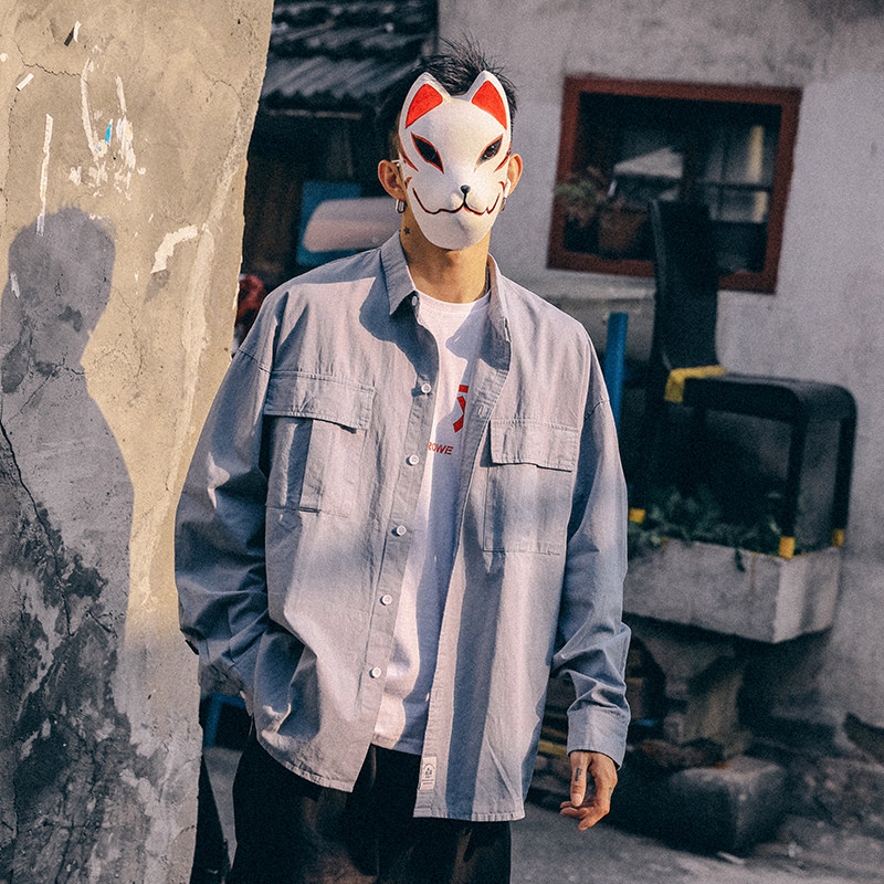 The whole village 2021 spring and autumn Japanese long-sleeved shirt shirt men's loose casual handsome new solid color ins tide brand