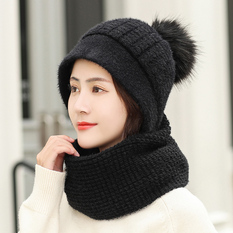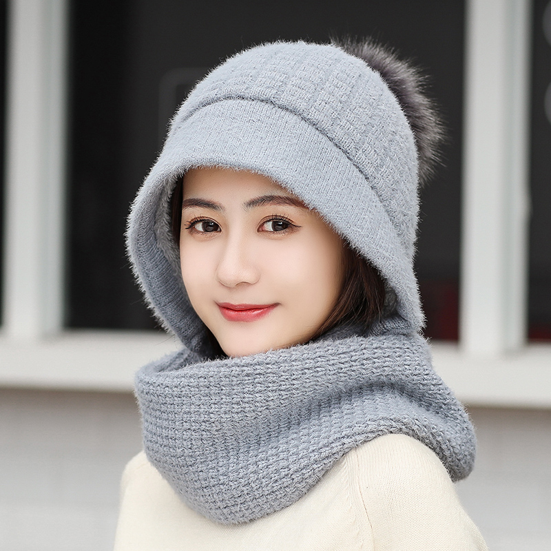 Hat Scarf All-female Autumn Winter Plus Suede Thickened warm Han version knitted wool wire surrounding neck Anti-chill bicycling 100 lap