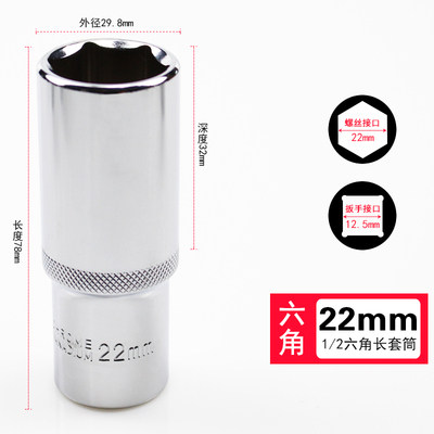 Lengthened 1 2 hexagonal sleeves head sub-Taiwan big flying car maintenance tool ultra-thin long sleeves