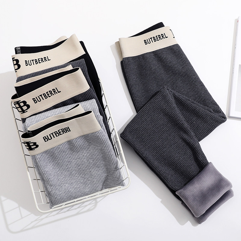 New Thread Letters Inner Lap Pants Female Autumn Winter Plus Suede Thickened net red large size OUTSIDE WEARING HIGH WAIST DISPLAY SLIM SMOKE PIPE PANTS
