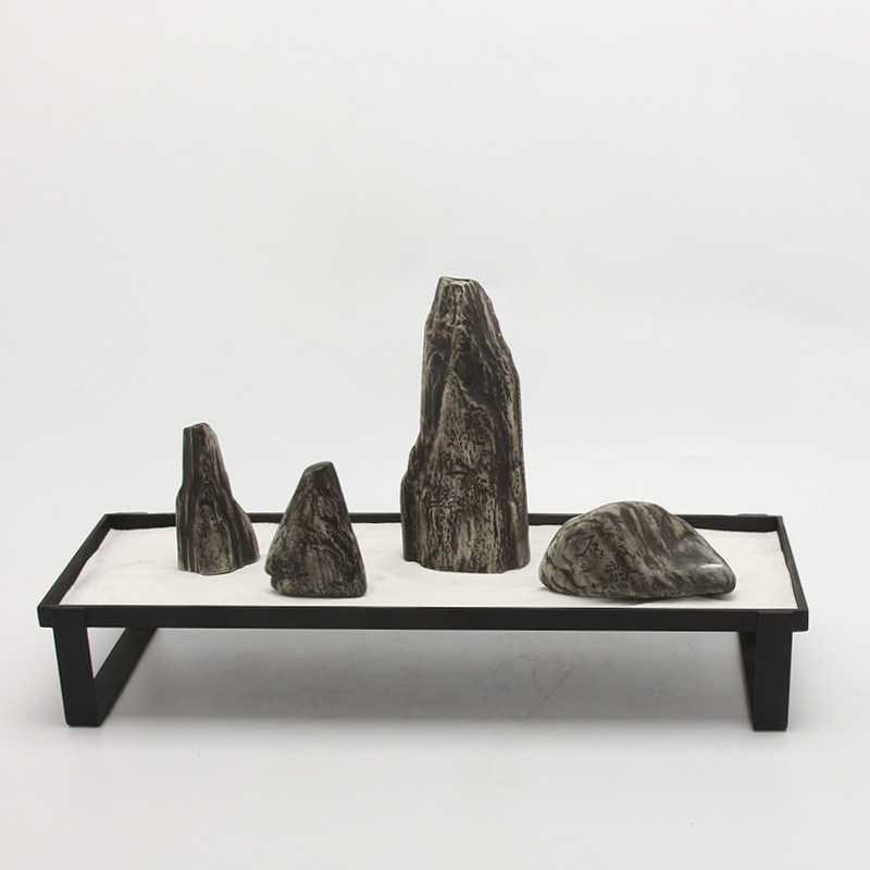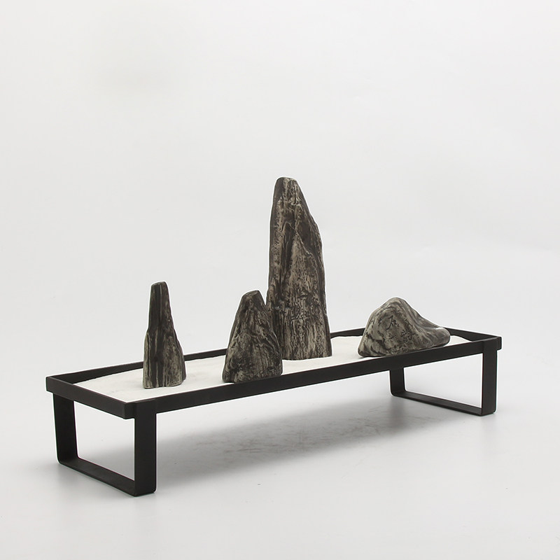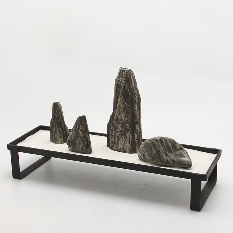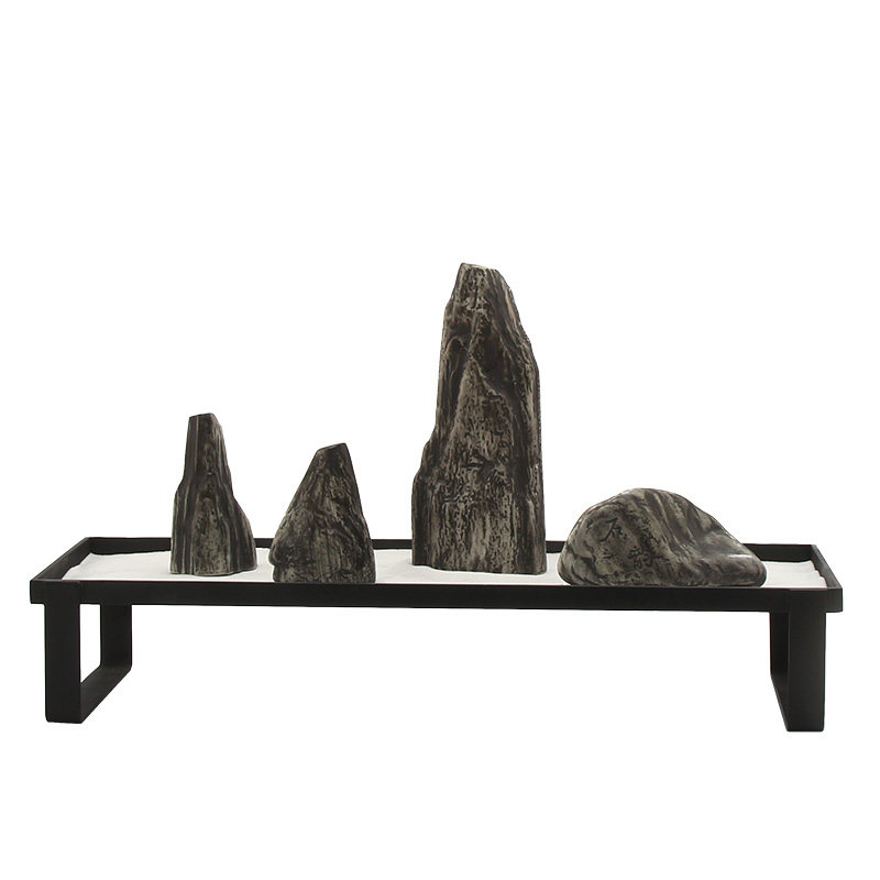 New Chinese meditation Ceramic Sand Tray Decoration Sample House Display Center-like Room Living Room Genguan Fake Mountain Stone Head Microscape Pendulum