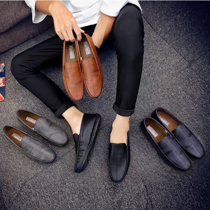 Mulinsen men's shoes 2022 Doudou shoes men's fashion sets of feet England low top soft bottom casual leather shoes men's lazy shoes