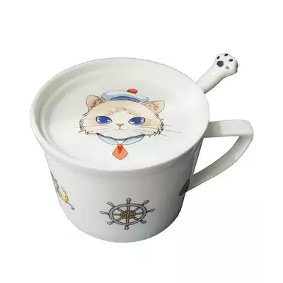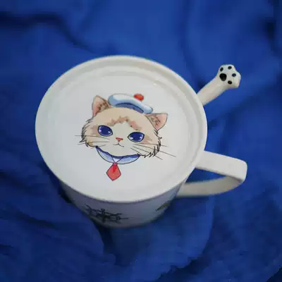 (Tadahara)Cute cat mug Original Meow cat cat claw cup with lid Muppet English short