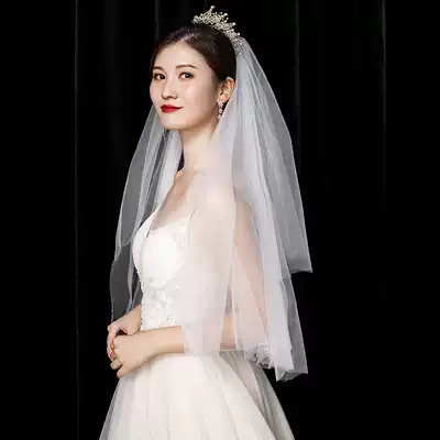 Bride veil female vintage wedding veil Super fairy short champagne Crown Net red photo props