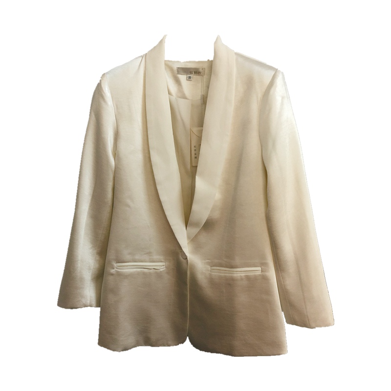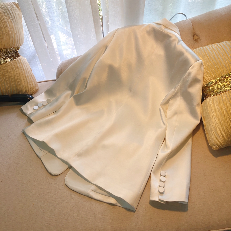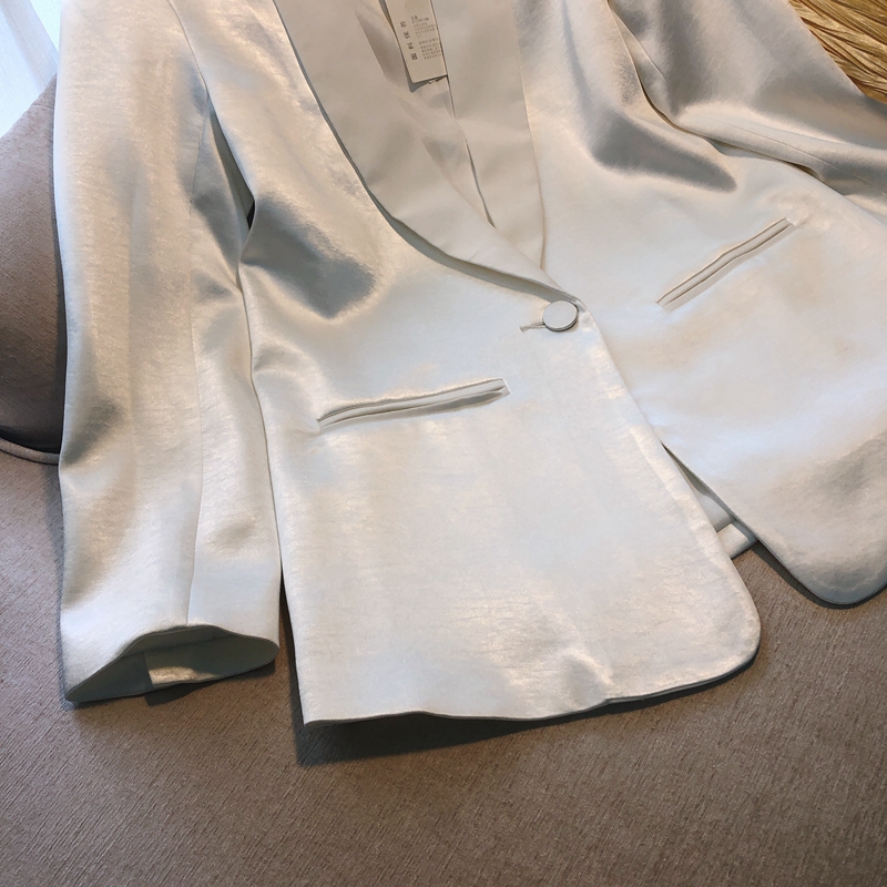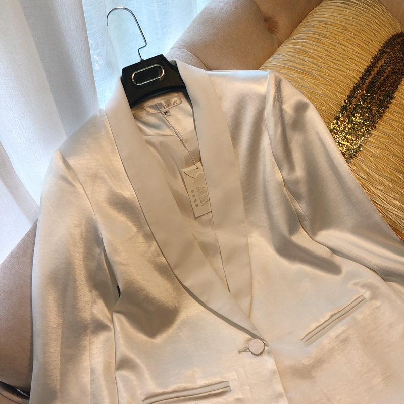 French design sense white acetate satin Korean version British style fashion internet celebrity temperament suit small jacket female