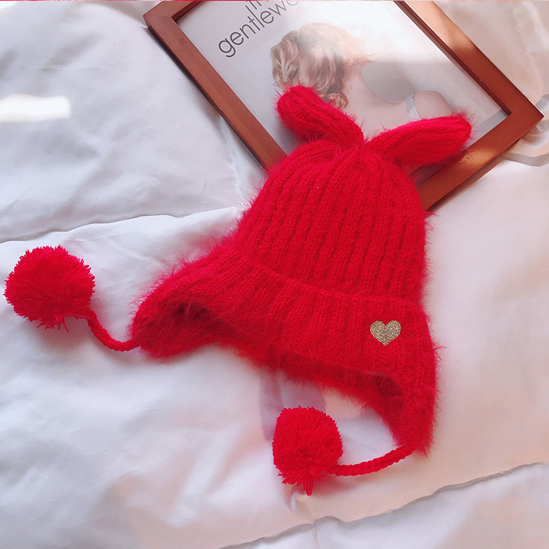 Autumn and winter thickened double-layer rabbit ears fur ball hat ear protection warm soft wind-resistant ladies