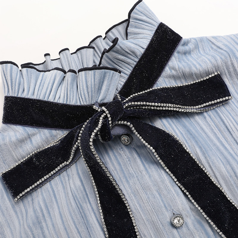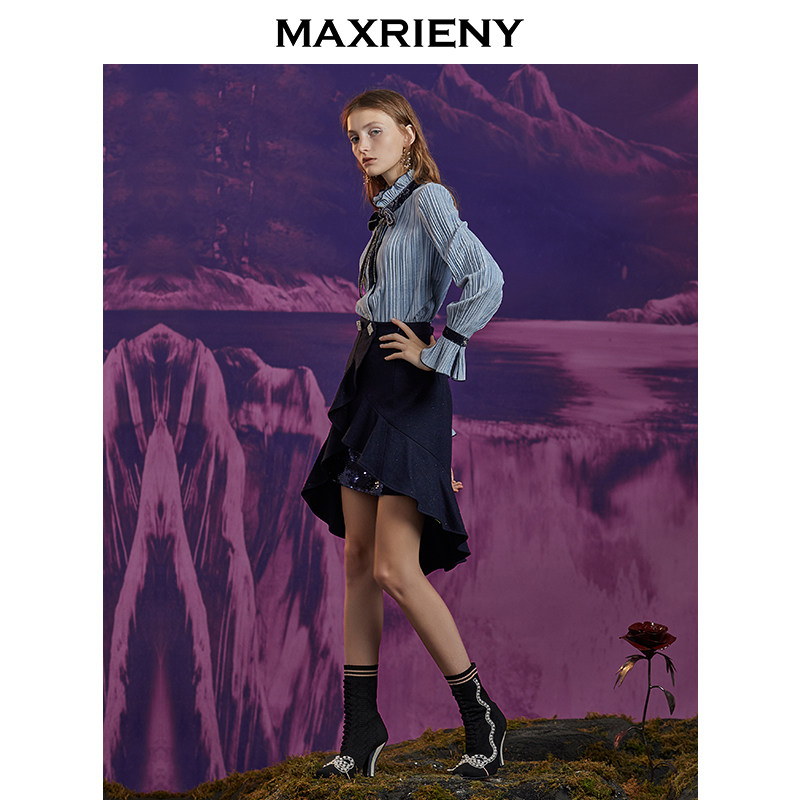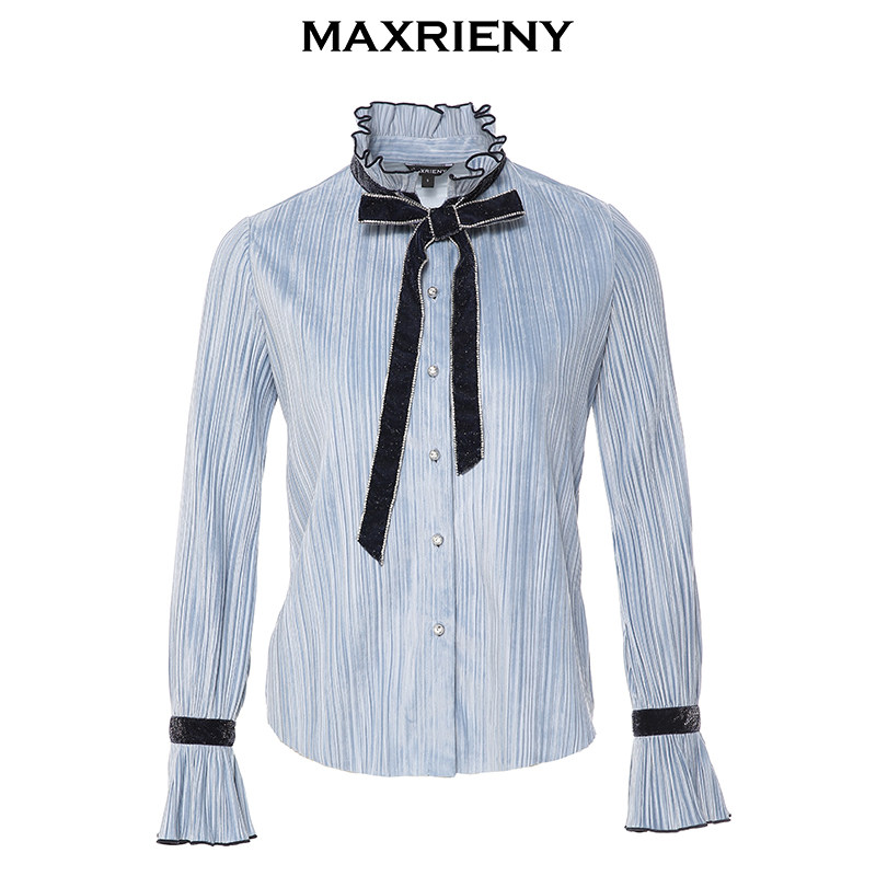 MAXRIENY new fashion temperament pleated striped top short chiffon shirt women's design sense niche shirt