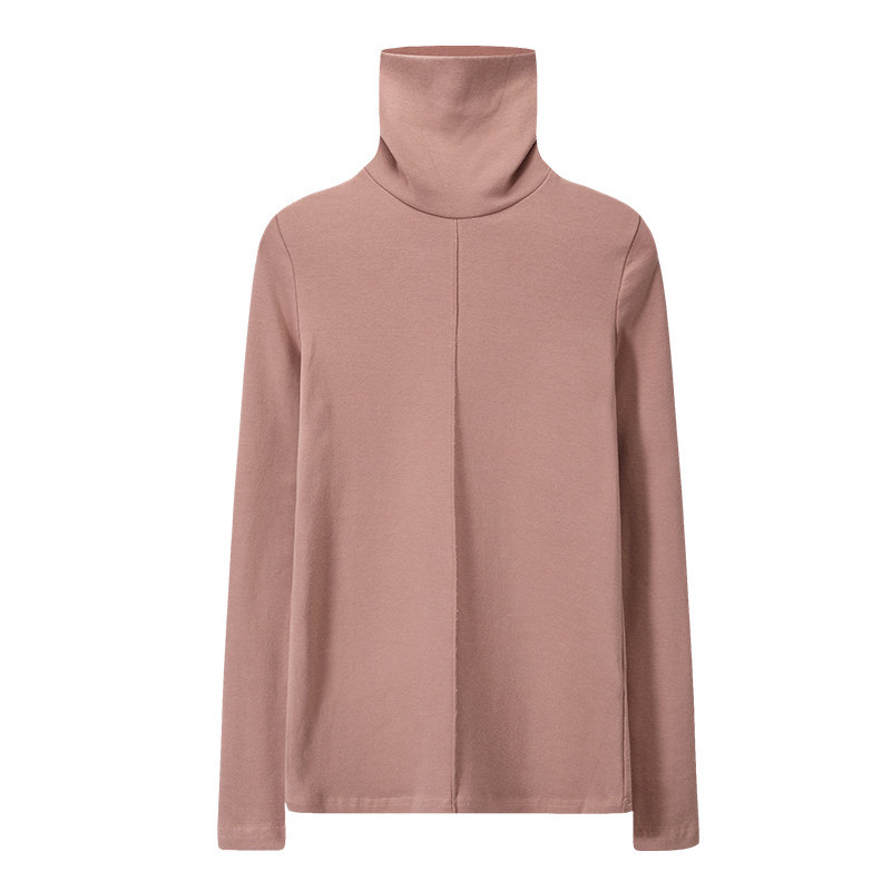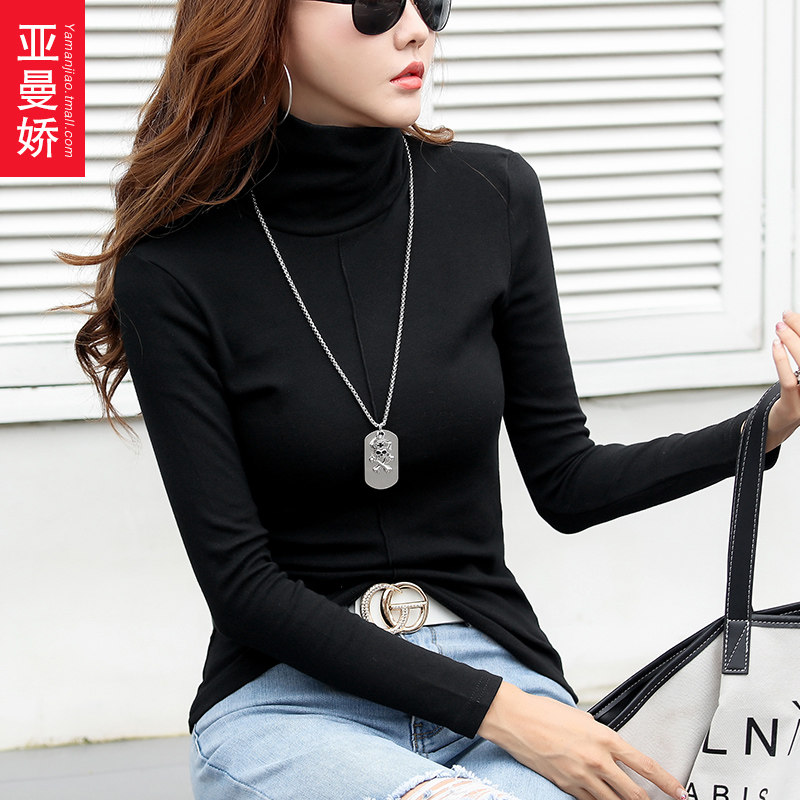2021 autumn new high-neck base shirt women's inner long-sleeved T-shirt pure cotton high-neck slim Korean version of the simple tide T-shirt