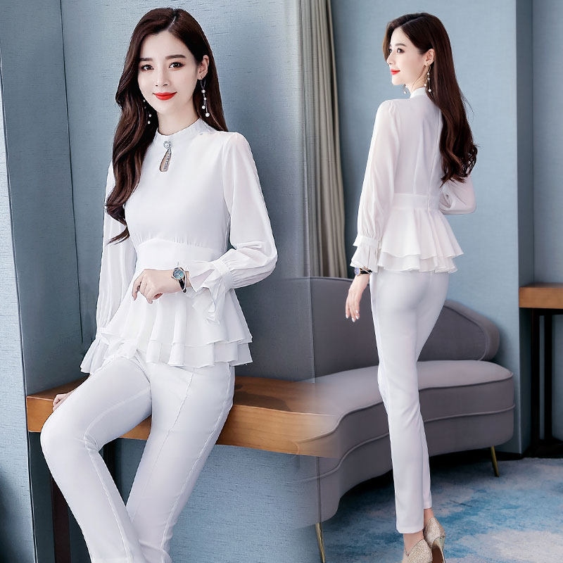 Small fragrant wind suit woman 2022 spring and autumn new fashion work clothes temperament Van two sets of smoke pipe pants to be thin