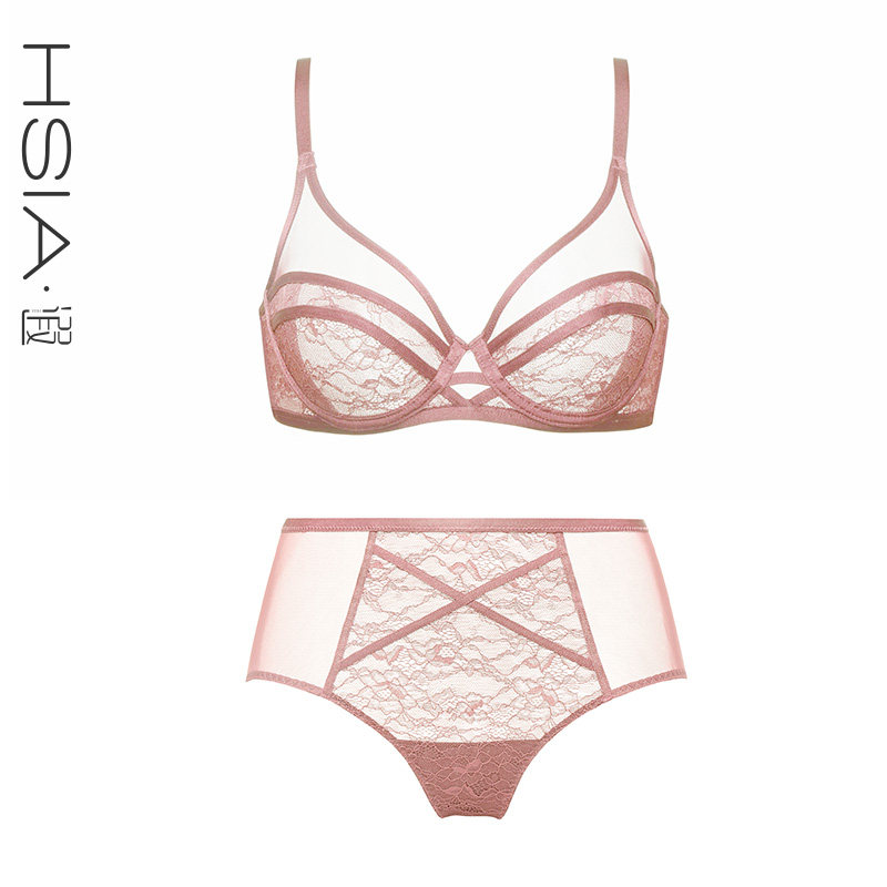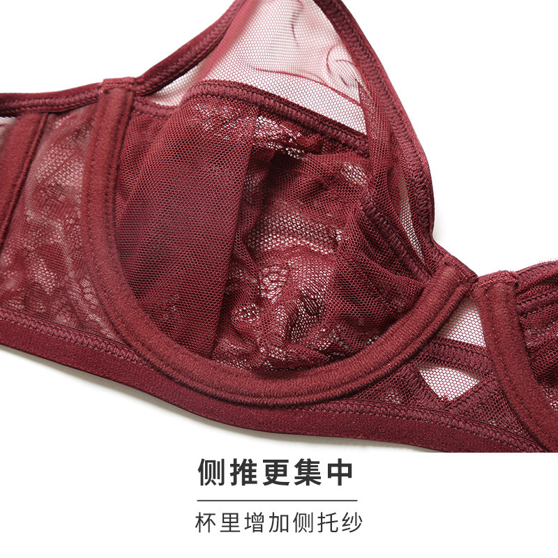 HSIA Daydream underwear set Women's lace summer thin large size full cup rimmed bra Large chest show small bra