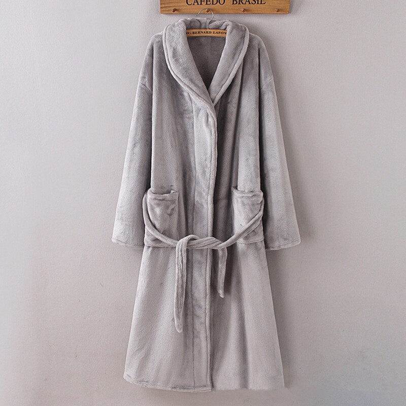 Sleeping robe female winter coral suede lovers thickened lengthened flannel suede bathrobe for autumn and winter large size for men's warm housekeeping